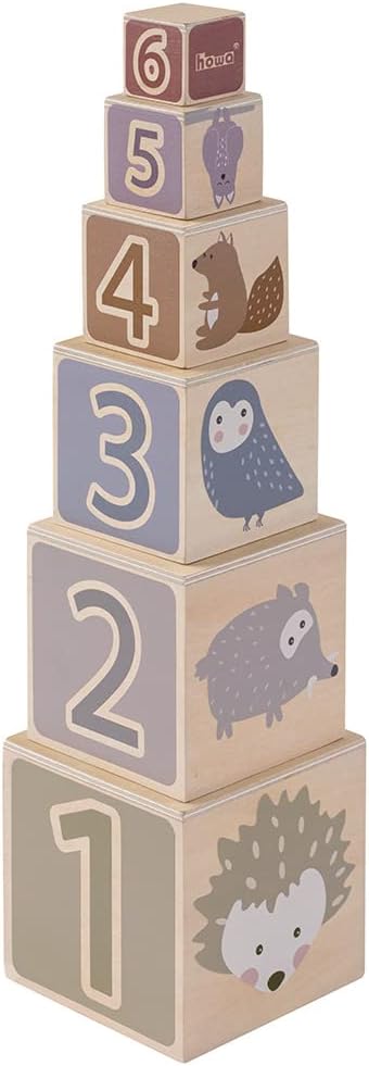 howa Stapelturm aus Holz ab 1 Jahr, Motorikspielzeug Stapelwürfel 6027