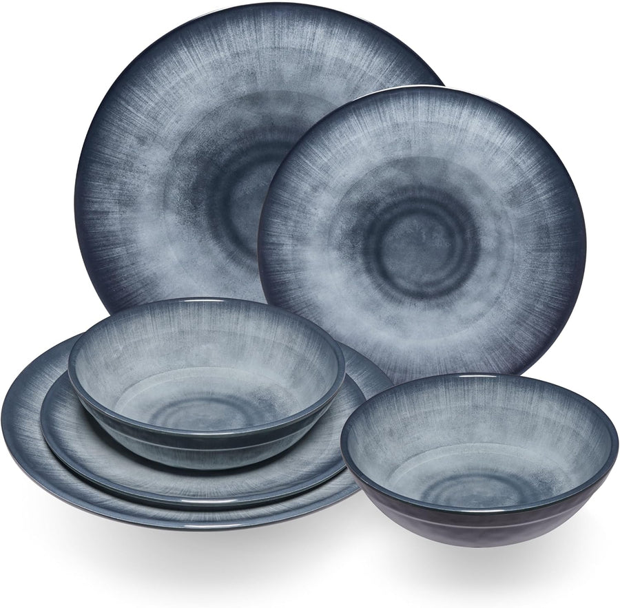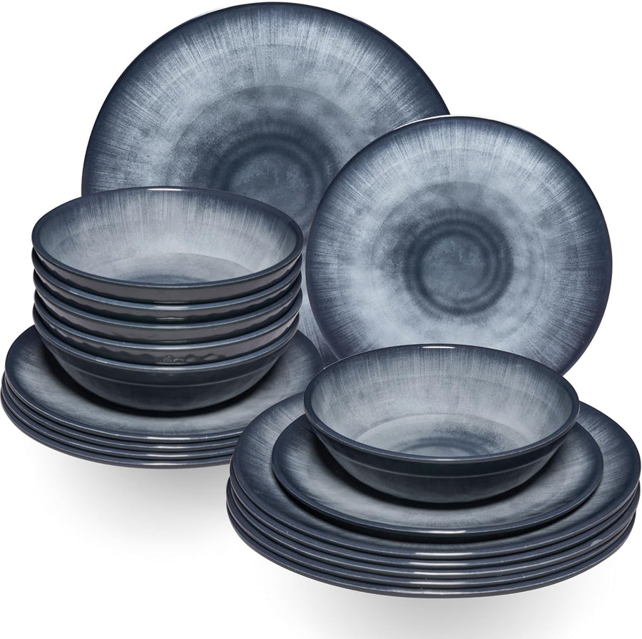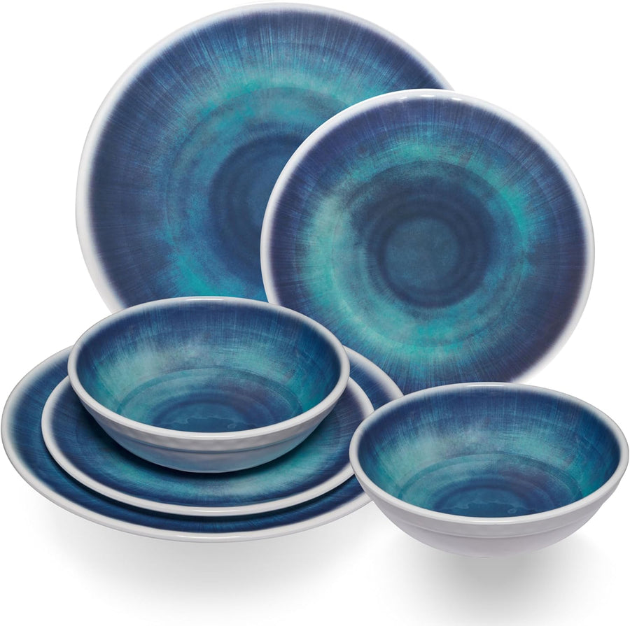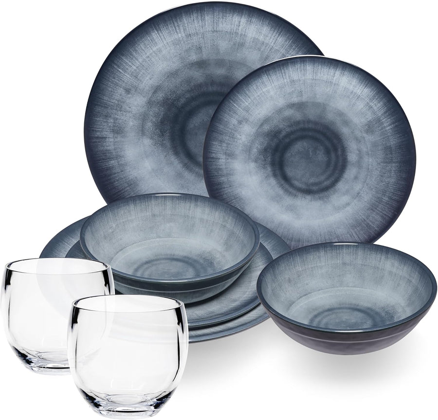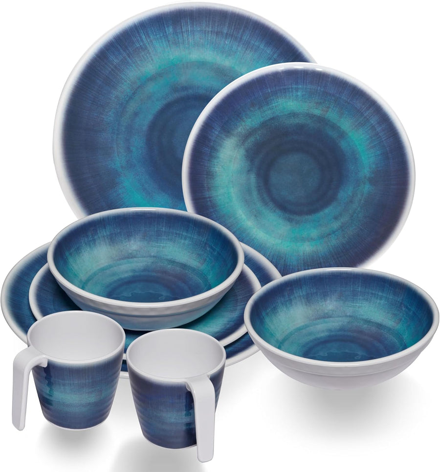 Melamin Geschirr Set Jesolo Blau für 2 Personen - Steingutoptik Spülmaschinengeeignet Essgeschirr Ca