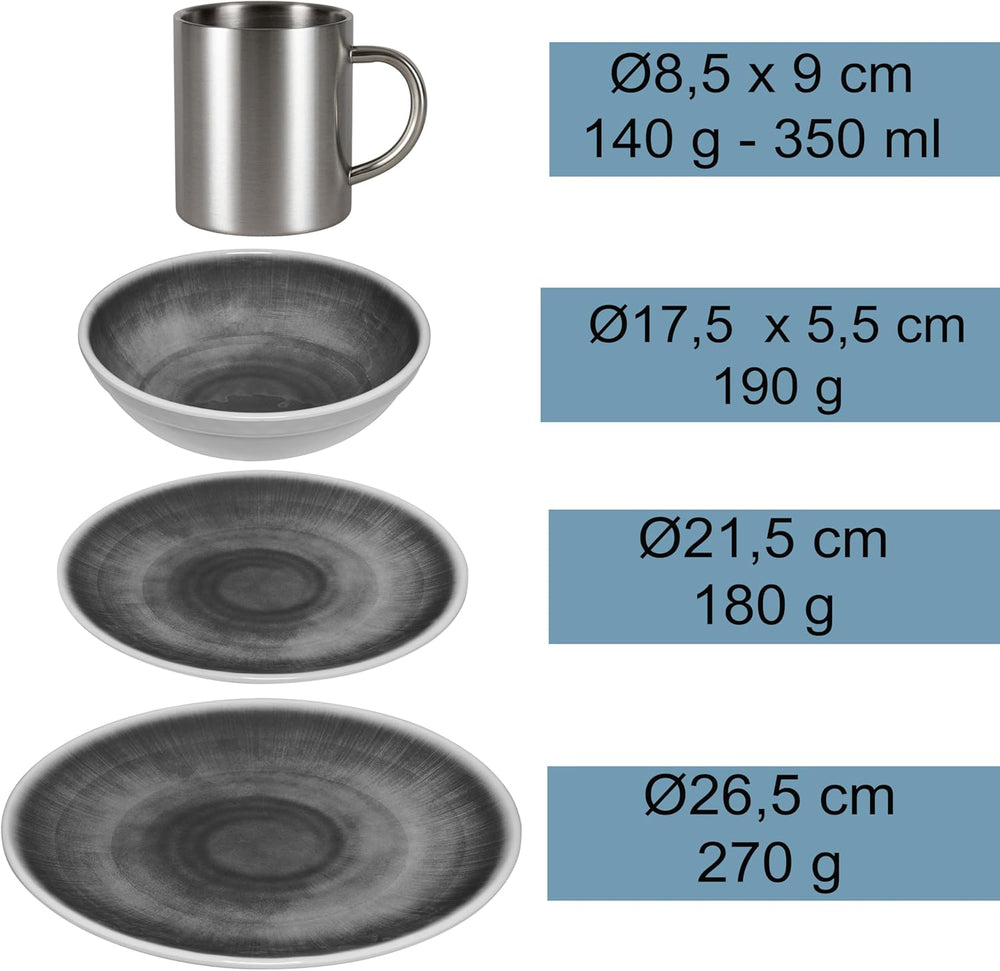 Melamin Geschirr Set Jesolo Grau für 2 Personen Steingutoptik Spülmaschinengeeignet Essgeschirr Camp