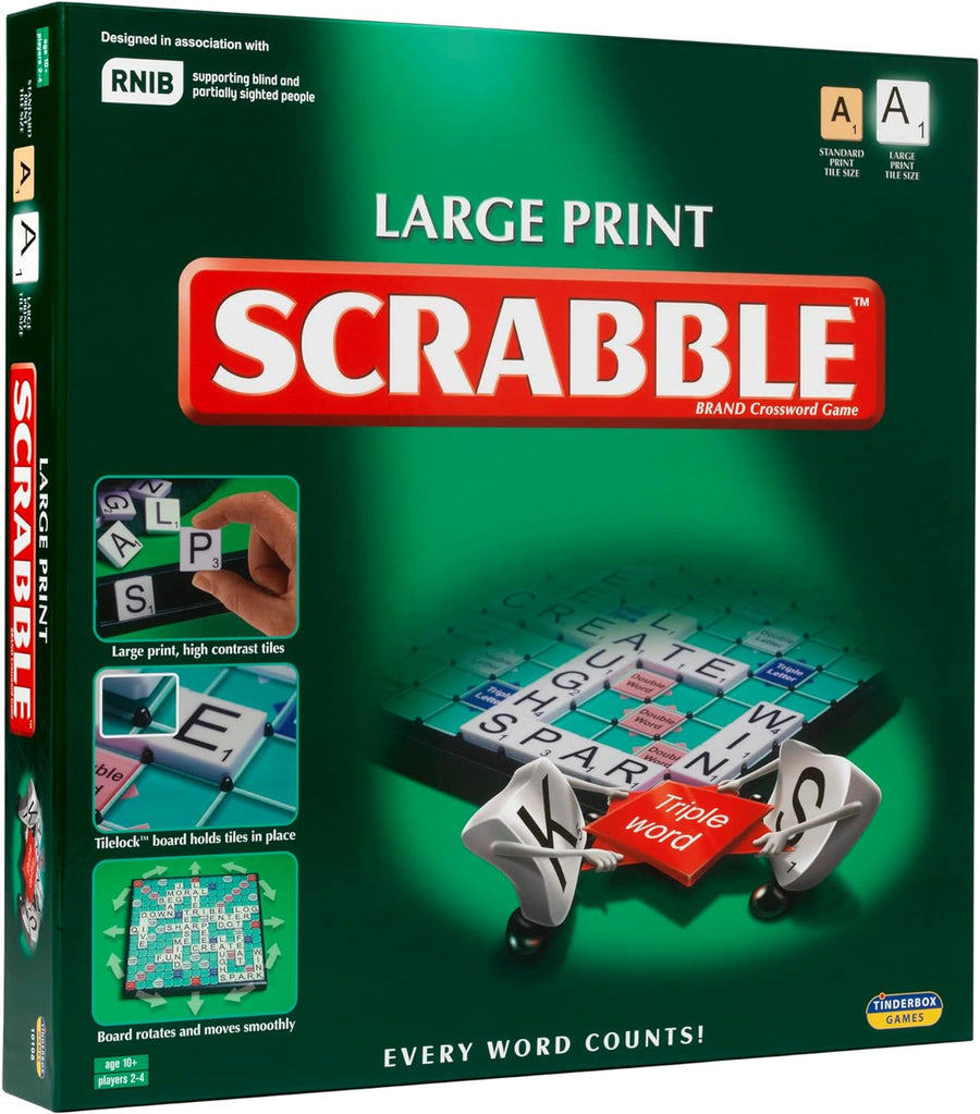 Ideal | Grosses Print Classic Scrabble: Extra grosses Brett mit klarem, grossgedrucktem Text und Buc
