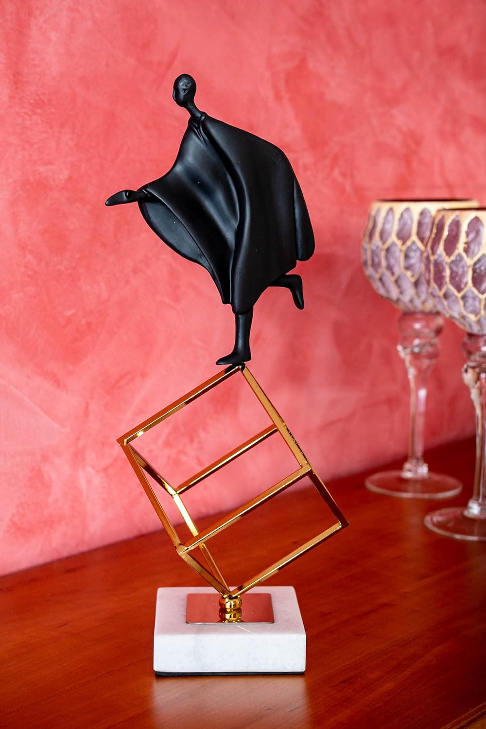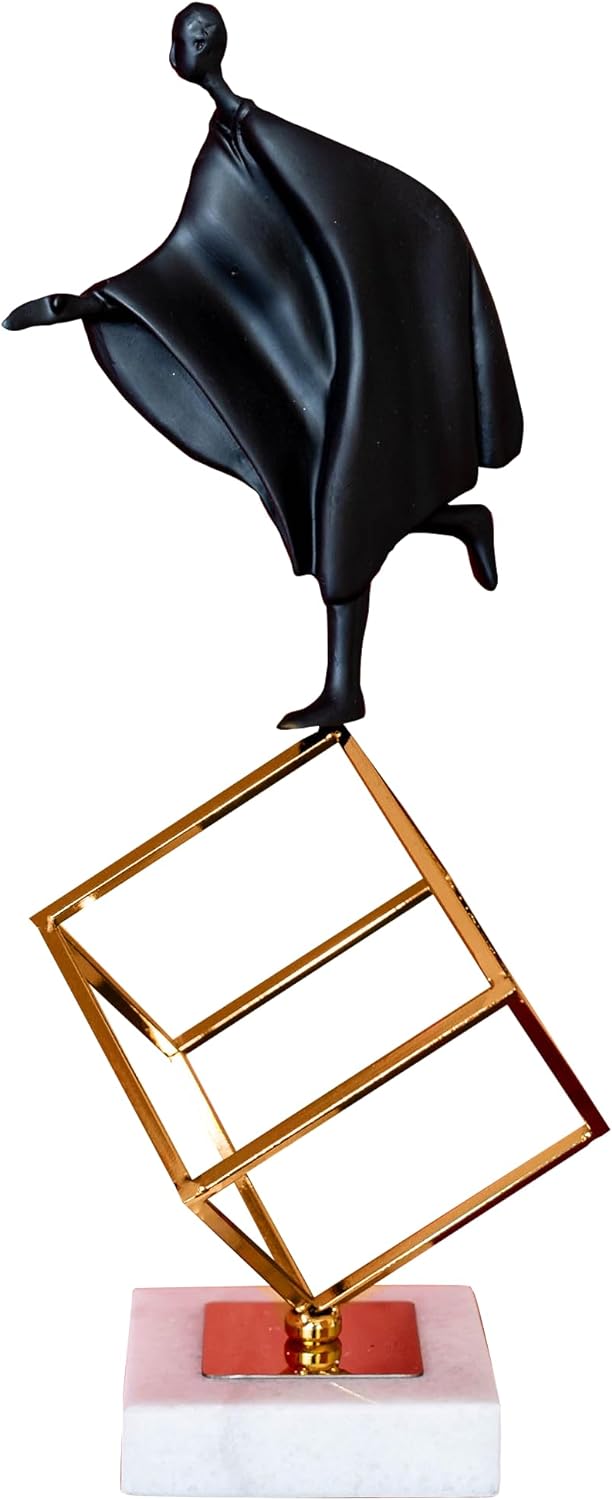 IDYL Moderne Skulptur Figur Resin mit Metall Mann auf Würfel |Masse: 15x15x43 cm | Material: Polyres