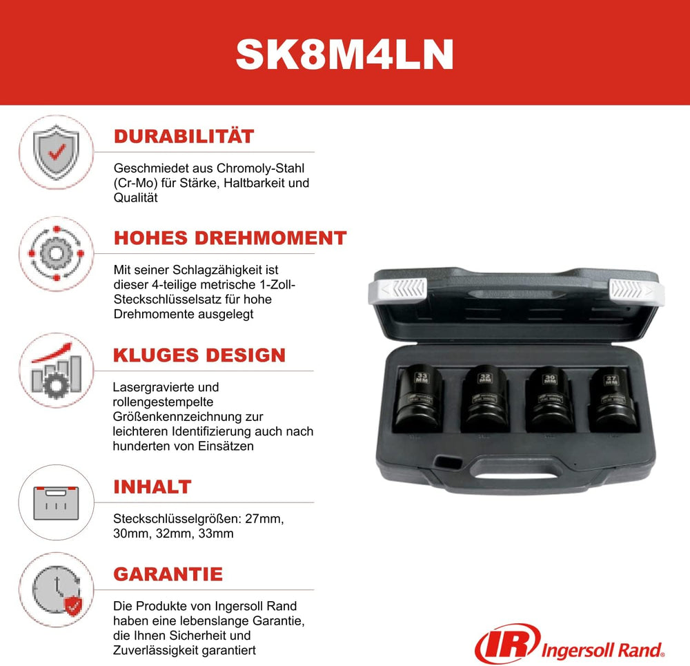 Ingersoll Rand, SK8M4LN, 1"-Antrieb metrische universal Steckschlüssel, 4er Set 1" Long 1" Long, Soc