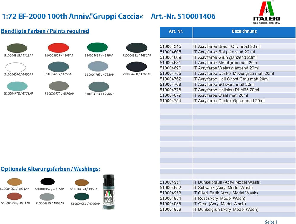 Italeri 510001406 1:72 EF-2000 100th Anniv.Gruppi Caccia