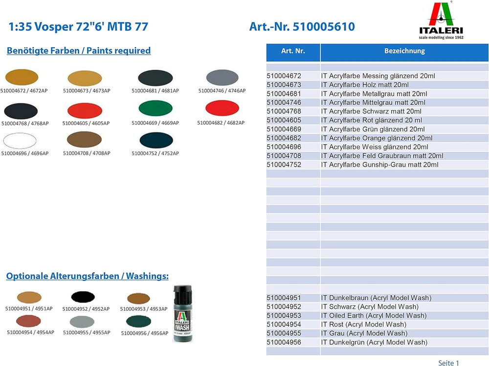 Italeri 510005610-1:35 Vosper 72''6' MTB 77