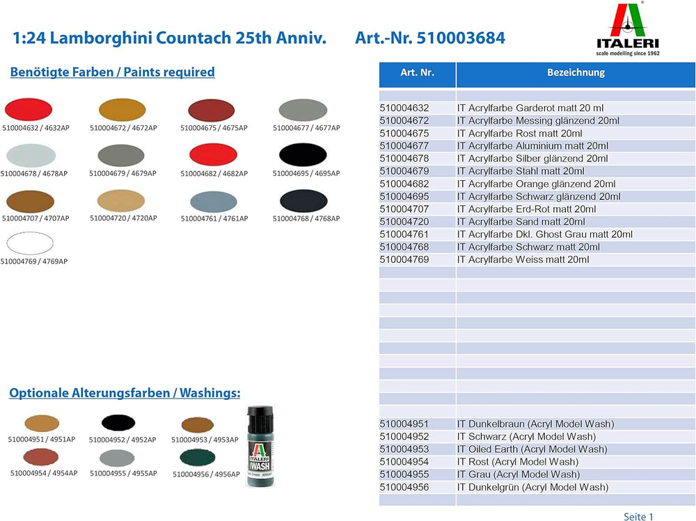 Italeri 3684-1:24 Lamborghini Countach 25th Anniversary, Fahrzeuge