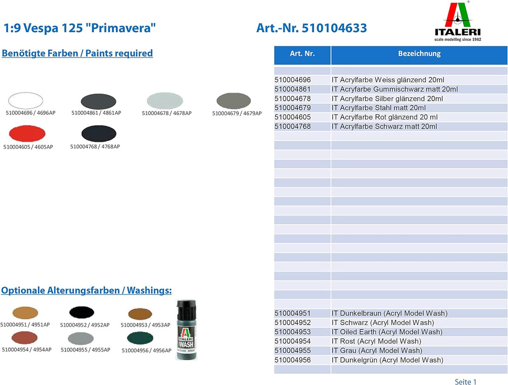 Italeri 4633 Vespa 510104633-1:9 125 "Primavera, Modellbau, Bausatz, Standmodellbau, Basteln, Hobby,