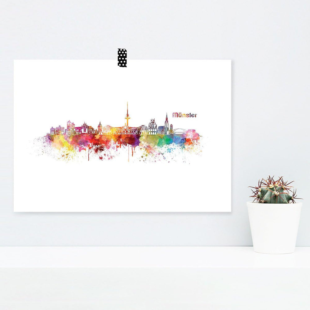 JUNIWORDS Poster mit/ohne Holzrahmen, Wähle ein Motiv, Aquarell Skyline Münster, Wähle eine Grösse,
