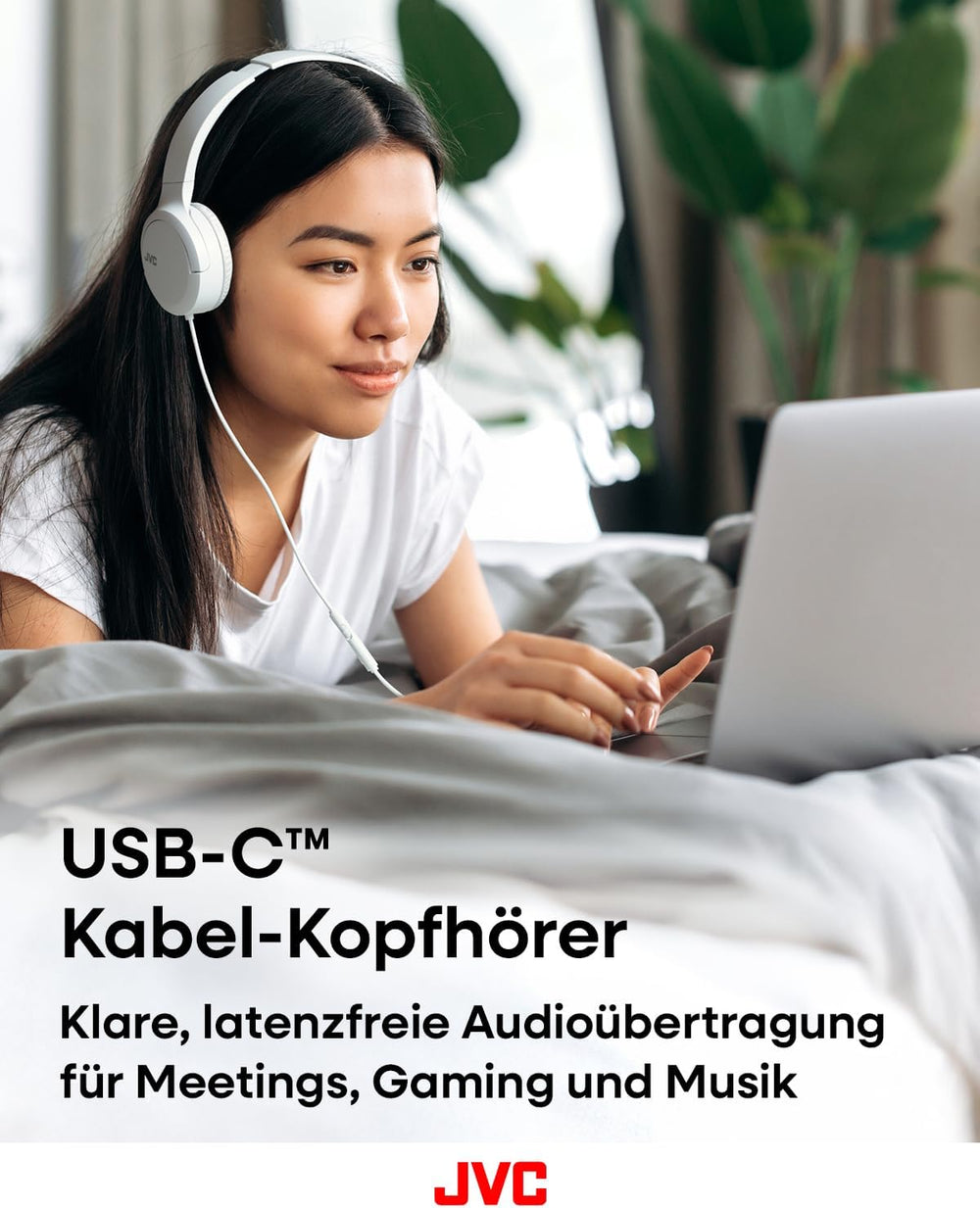 JVC HA-S33UC-W USB-C On-Ear-Kopfhörer, weiche Ohrpolster, faltbar, mit Mikrofon & 3-Tasten-Fernbedie