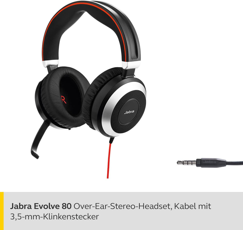 Jabra Evolve 80 UC Stereo Over-Ear Headset – Unified Communications zertifizierte Kopfhörer mit akti