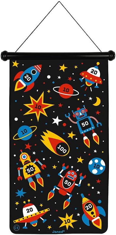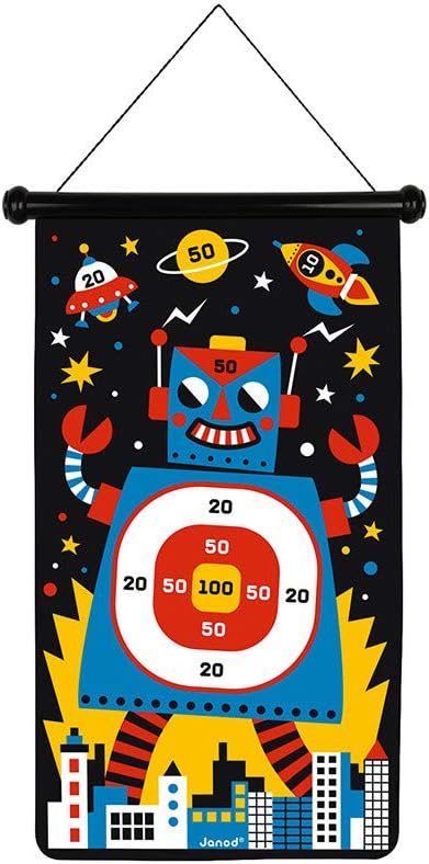 Janod - Magnetisches Dartspiel mit Roboter-Motiv, doppelseitig, Geschicklichkeitsspiel, zum Erlernen