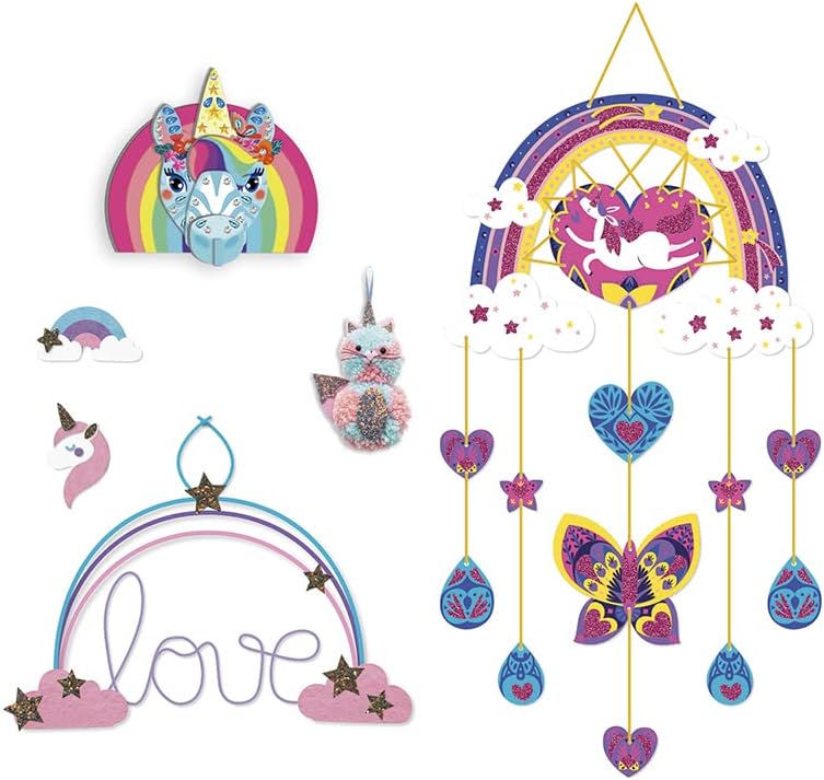 Janod - Kombi-Set für 6 Einhorn- und Regenbogen-Basteleien – Les Ateliers Déco – Kreativ-Set für Kin