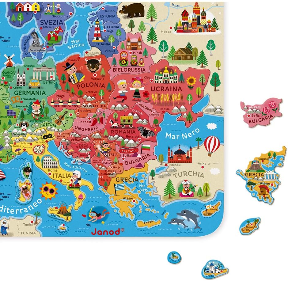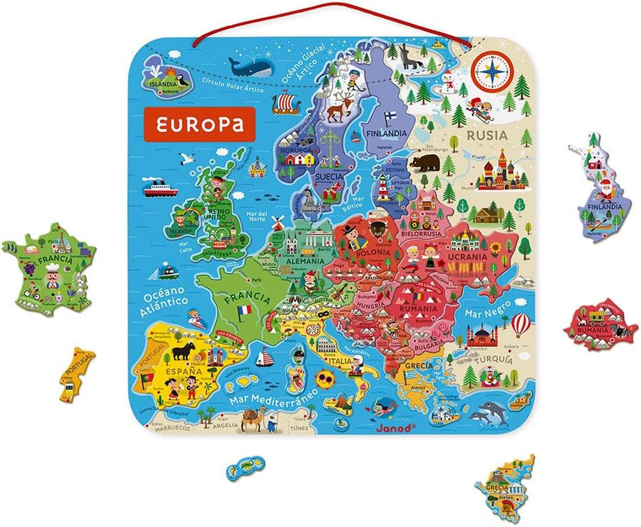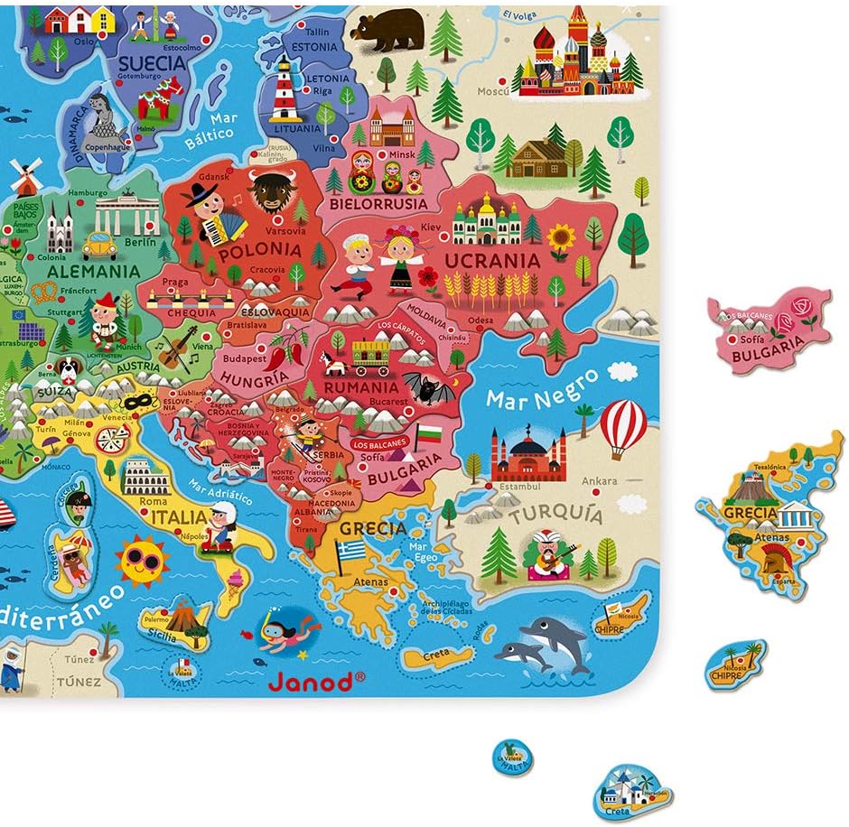 Janod - Magnetisches Puzzle Europakarte - Pädagogisches Holzpuzzle zum Lernen der Geographie - Europ