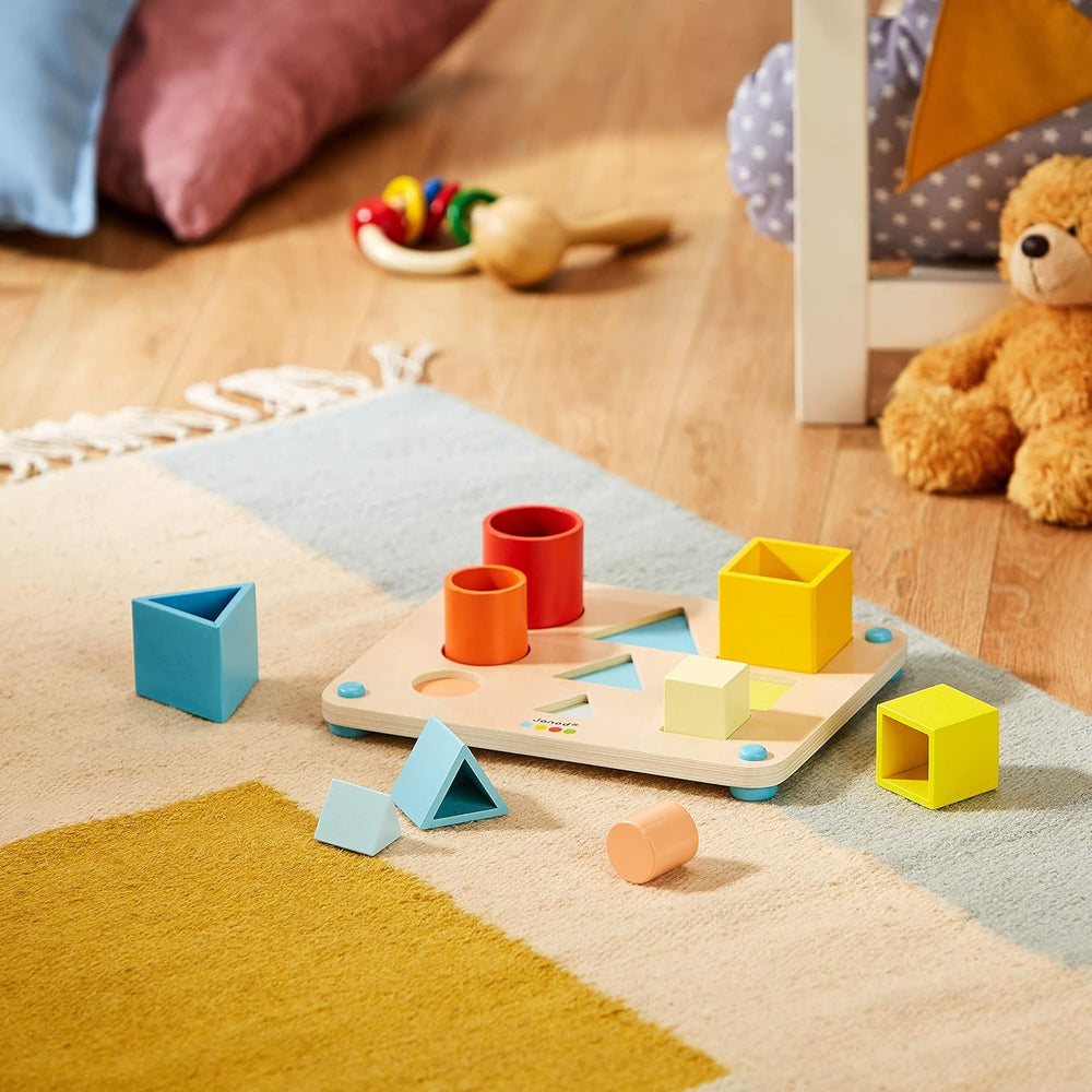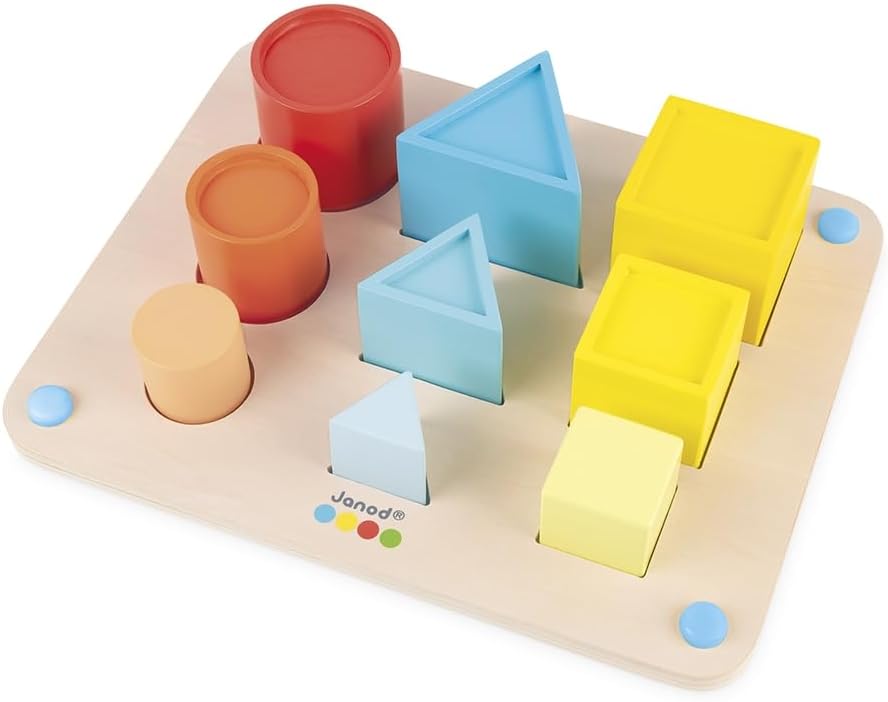 Janod - Grundlagen - Die Rauminhalte - Lernspiel aus Holz Babys und Kleinkinder 3-En-1 - Formen und