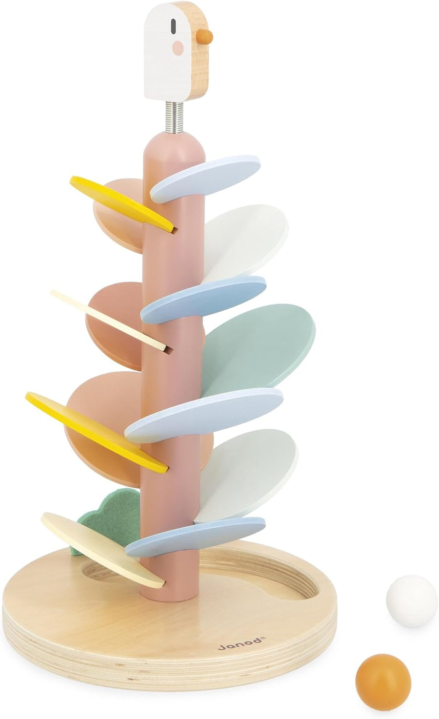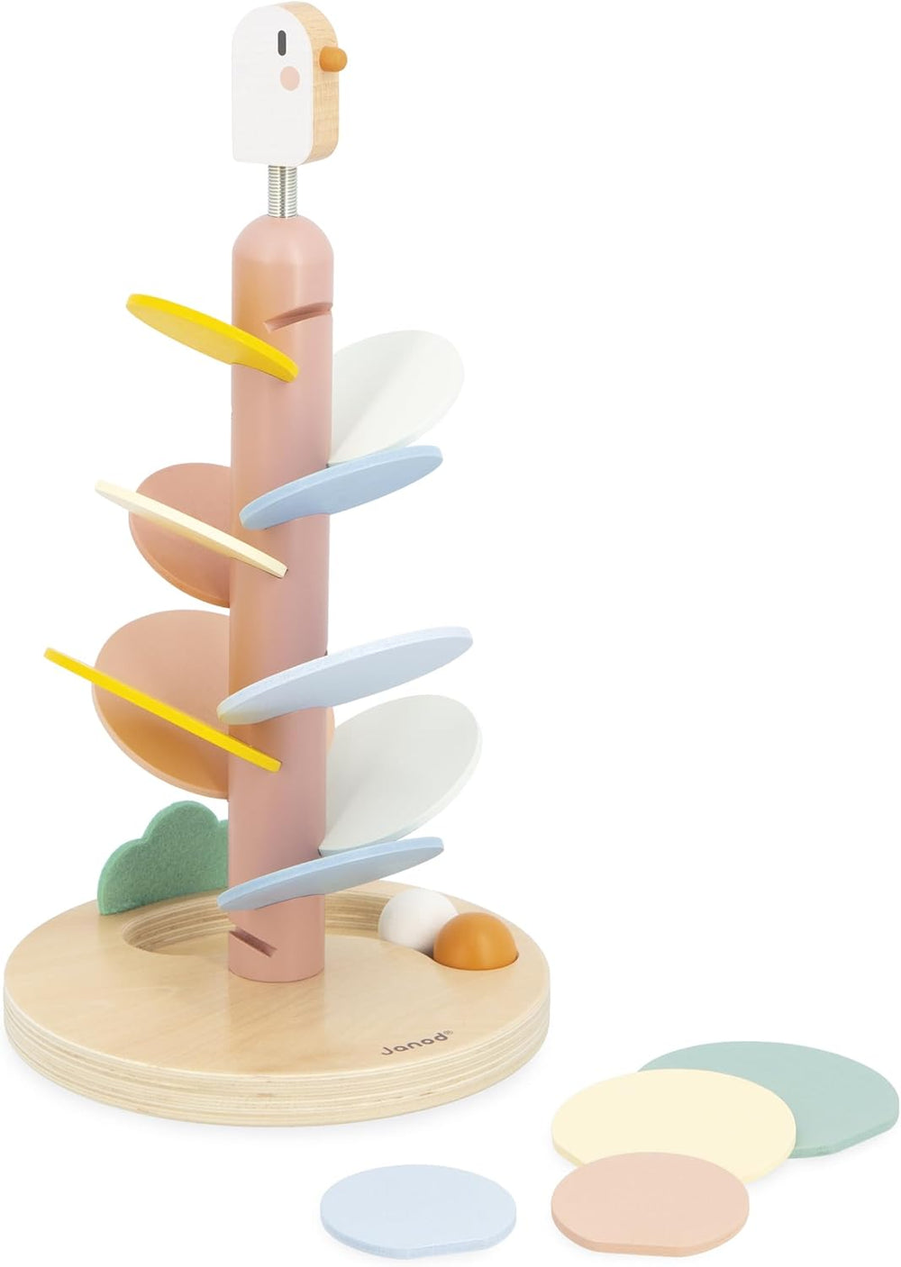 Janod - Holzrutsche zum Zusammenbauen - 14 Blätter, 2 Kugeln und 1 Anleitung inklusive - Lernspielze