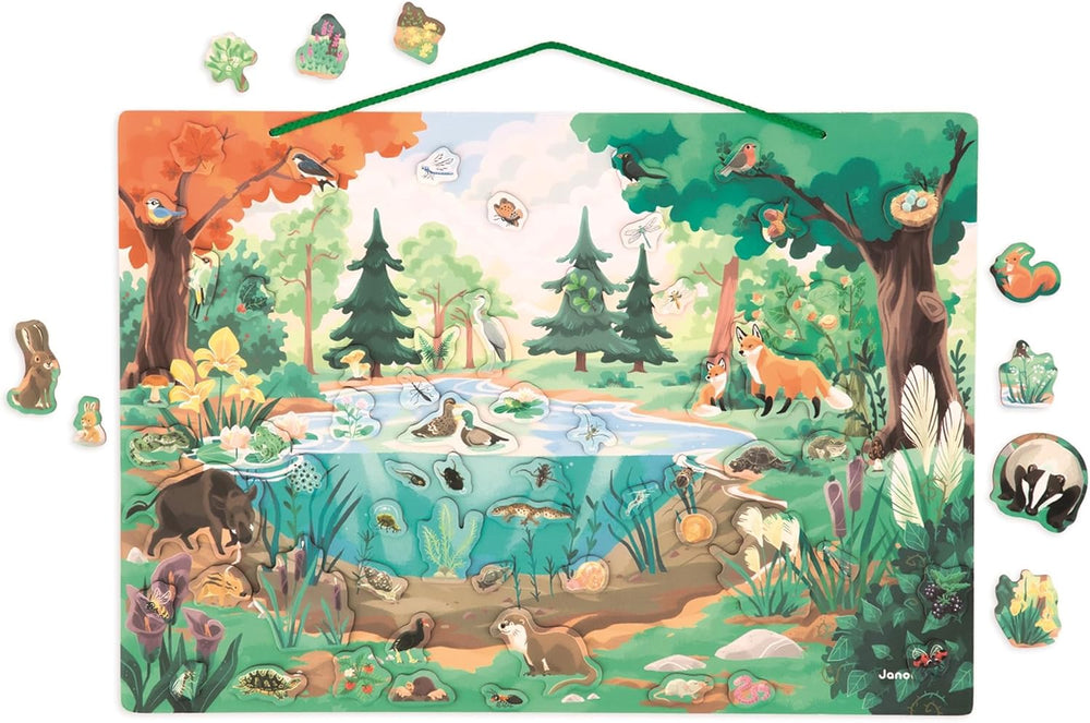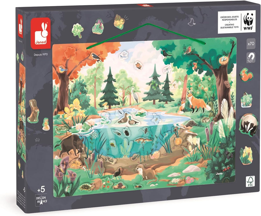 Janod - Magnet-Puzzle Der Teich - 70 Magnete aus FSC-Holz - 1 Erklärungsposter - Lernspiel - Fauna u