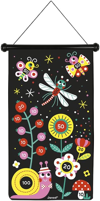 Janod - Magnetisches Dartspiel mit Garten-Motiv, doppelseitig, Geschicklichkeitsspiel, zum Erlernen