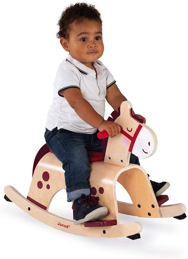 Janod - Holz Schaukelpferd ‘Pony’ - Babyspielzeug - Ideal zum Gleichgewicht Lernen - Anti-Kipp Syste