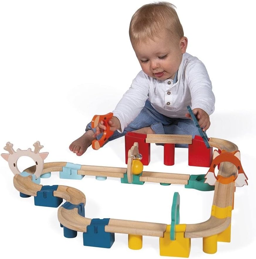 Janod - Meine erste Kugelbahn - 44 Teile aus Massivholz - Konstruktions- und Lernspiel - Feinmotorik