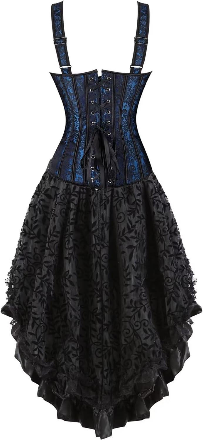 Korsett Damen Korsagenkleid Korsage Gothic Taille Lang Rock Hauch Bluse Kleid Elegant Frauen, Bluebl
