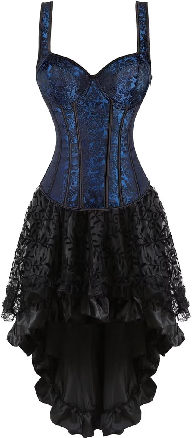 Korsett Damen Korsagenkleid Korsage Gothic Taille Lang Rock Hauch Bluse Kleid Elegant Frauen XXS Blu