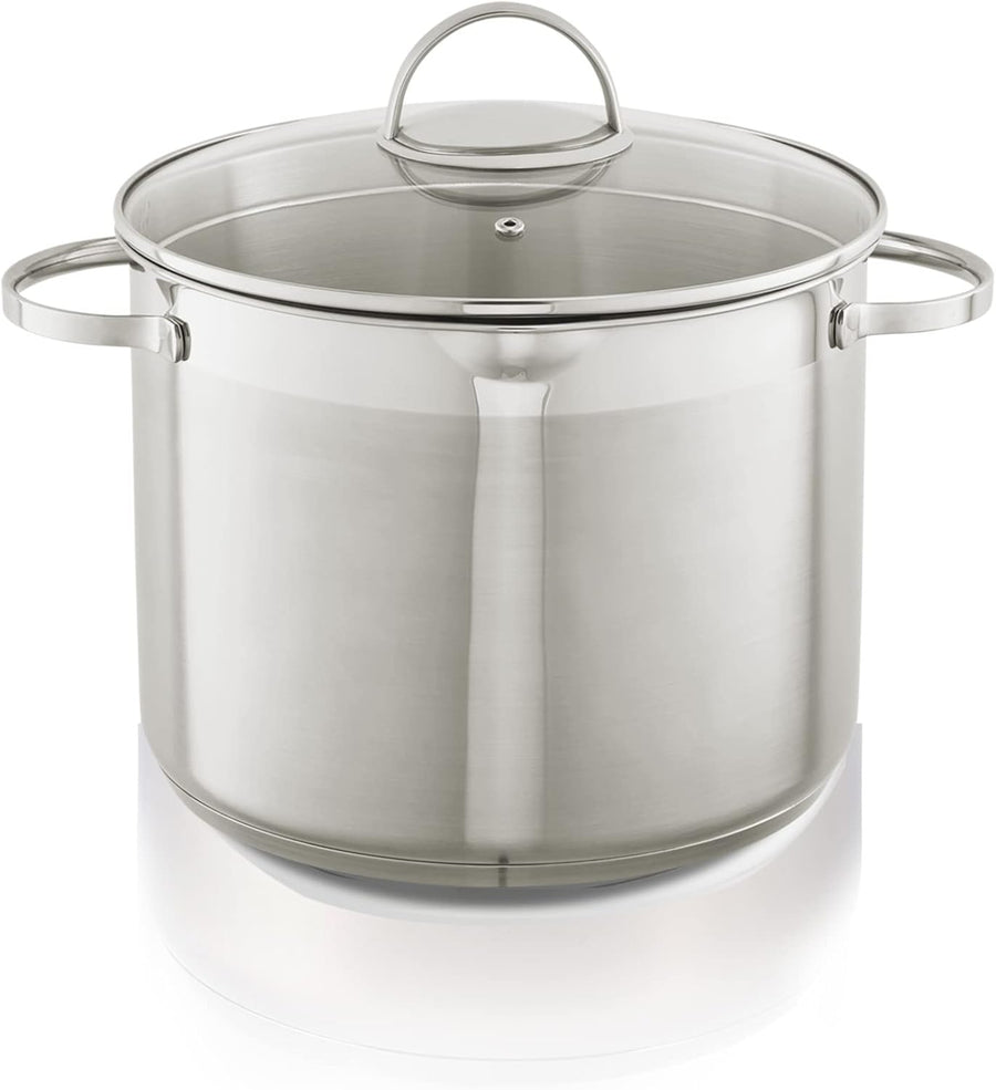 KHG Topf XXL Kochtopf 26 cm, 10 Liter Induktion, Edelstahl unbeschichtet inkl. Glasdeckel | hoher Su