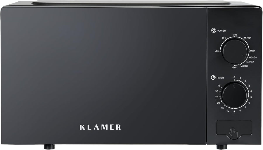 KLAMER Mikrowelle 20 Liter, 700 Watt, 9 Leistungsstufen inklusive Grill- und Auftaufunktion, 35-Minu