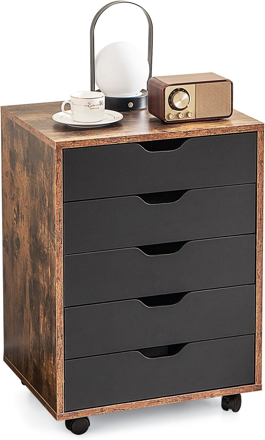 KOMFOTTEU Rollcontainer mit Schubladen, mobiler Aktenschrank Schubladenschrank mit Räder, Bürowagen