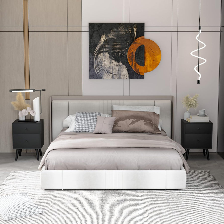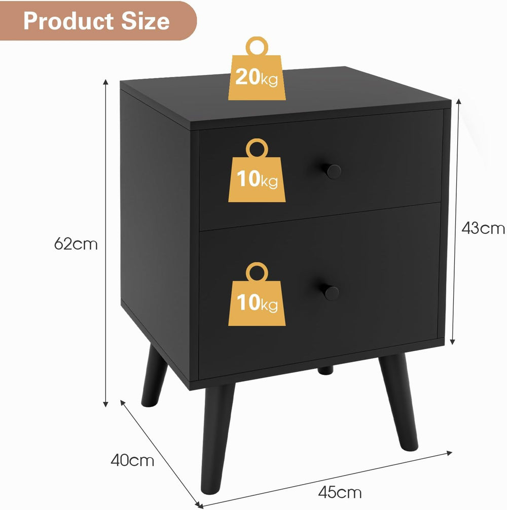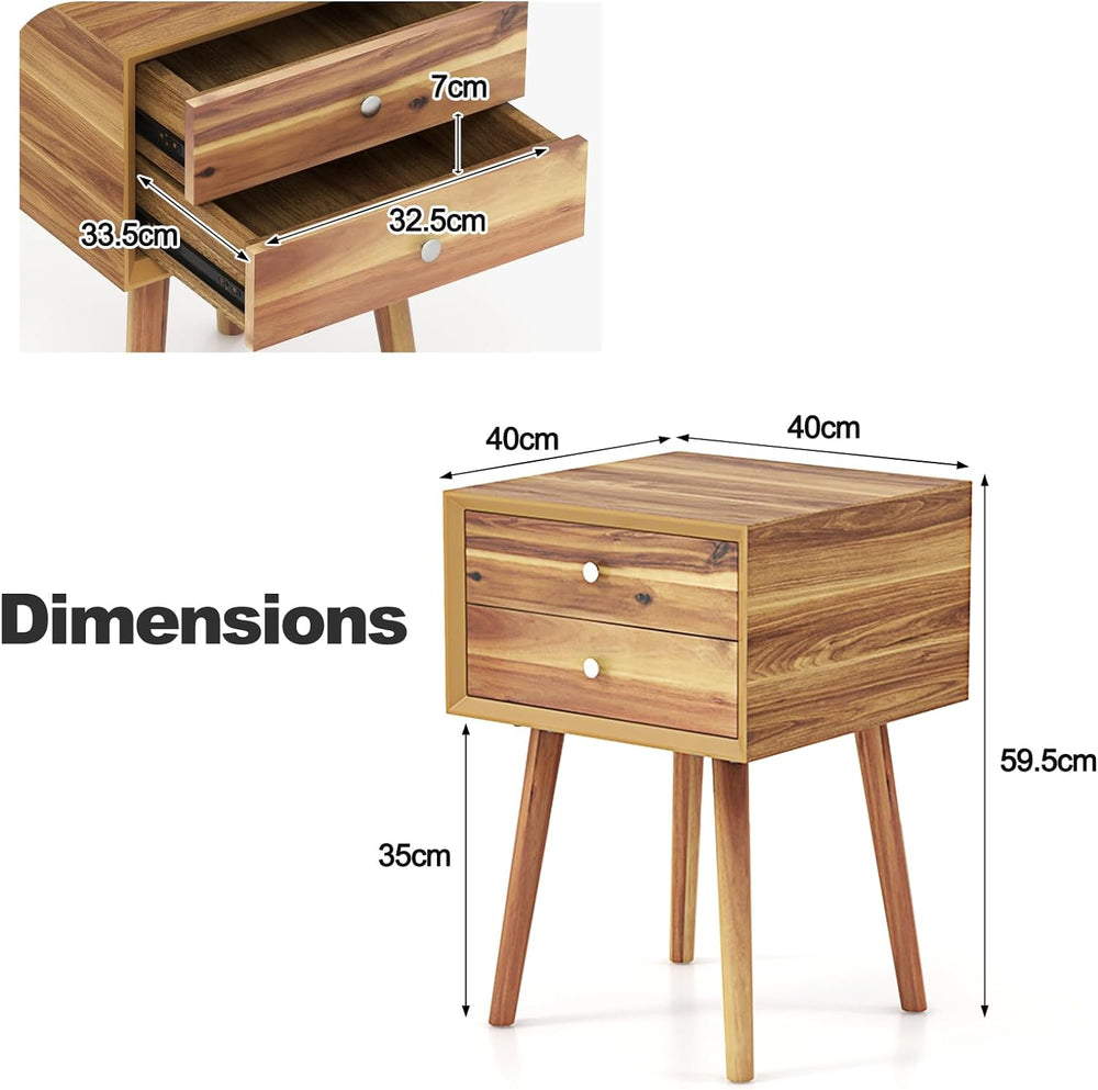 KOMFOTTEU Nachttisch mit 2 Schubladen, Beistelltisch mit Beinen aus Kautschukholz, Nachtschrank für