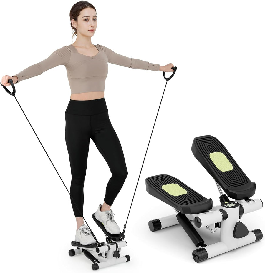 KOMFOTTEU Mini Stepper tragbar, Swing Stepper höhenverstellbar mit Widerstandsbändern, LCD-Bildschir