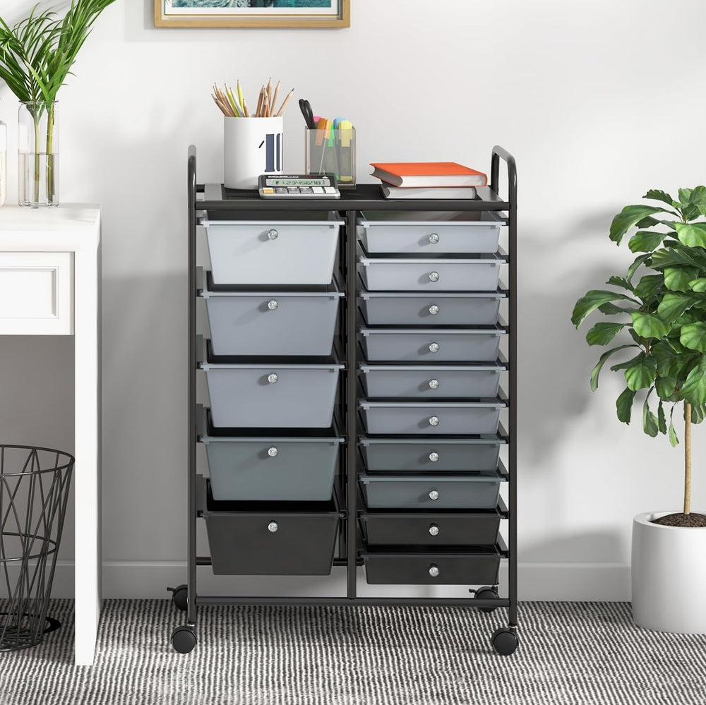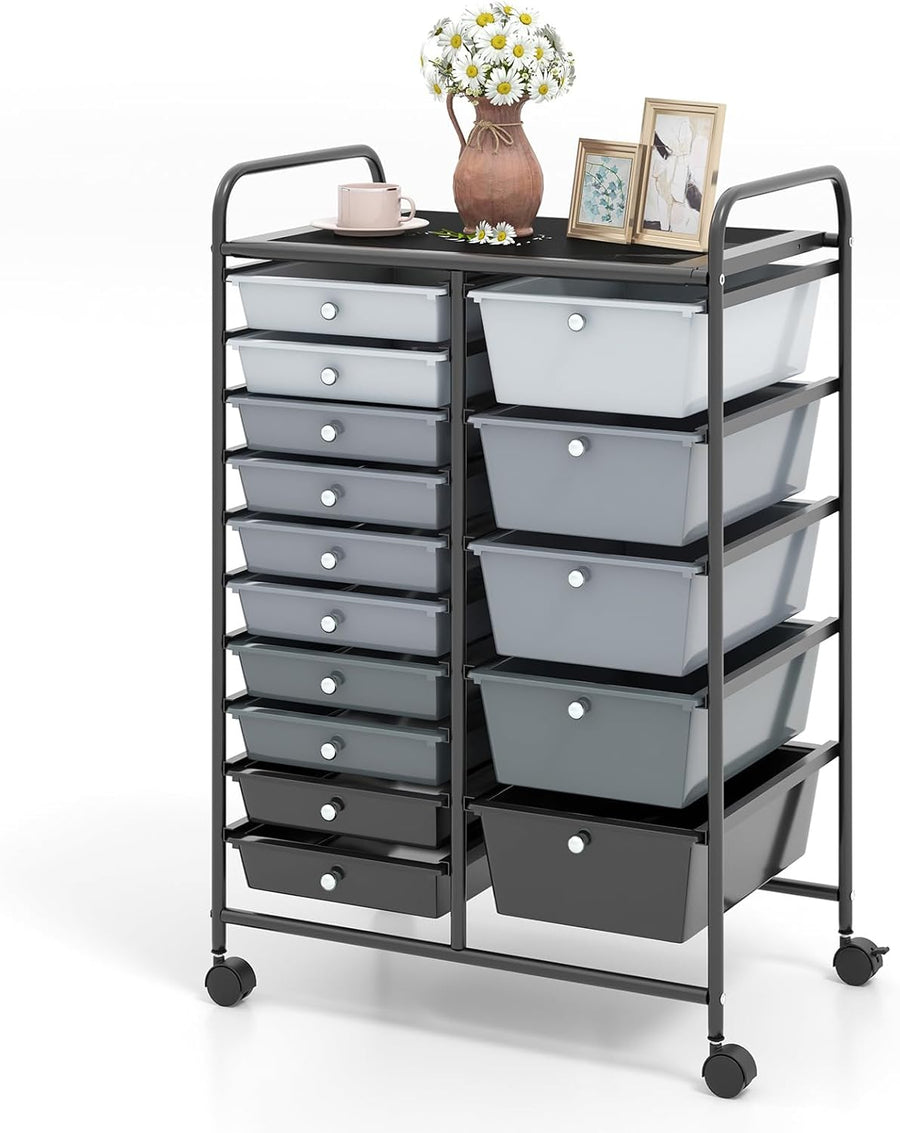 Rollwagen mit 10/15 Schubladen stapelbar, Badrollwagen Rollcontainer mit Metallrahmen, Allzweckwagen