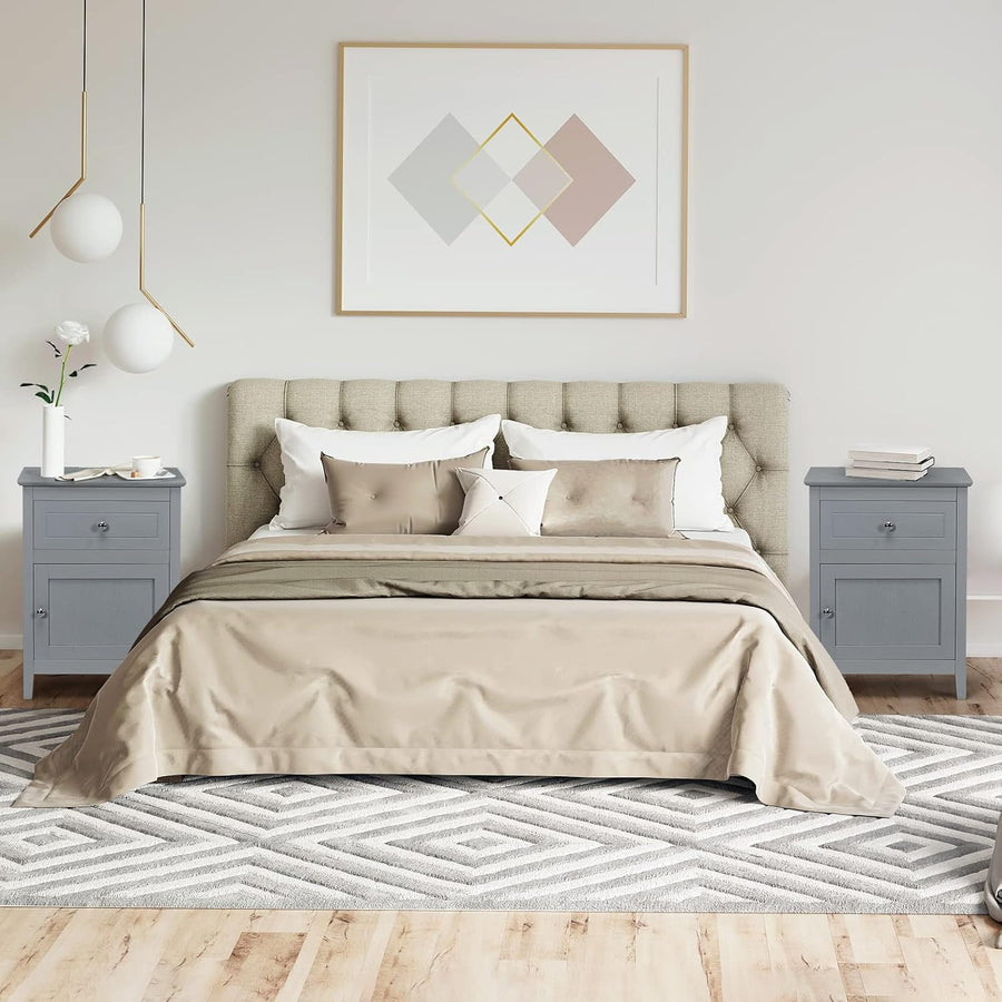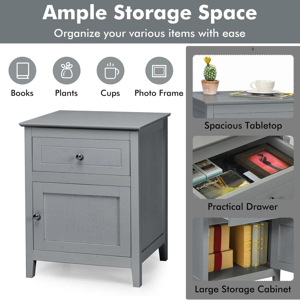 KOMFOTTEU Nachttisch aus Holz, Beistelltisch mit 1 Schublade & 1 Schrank, Sofatisch Nachtkommode für