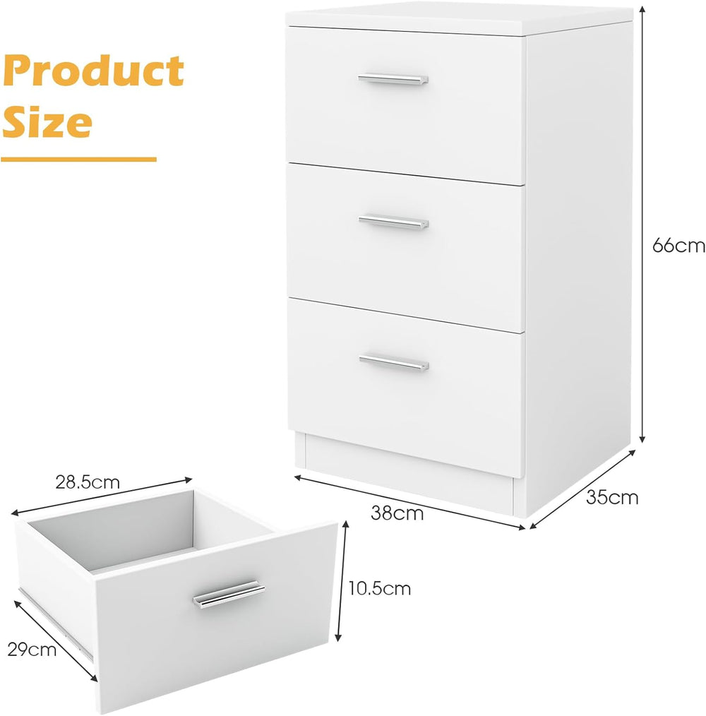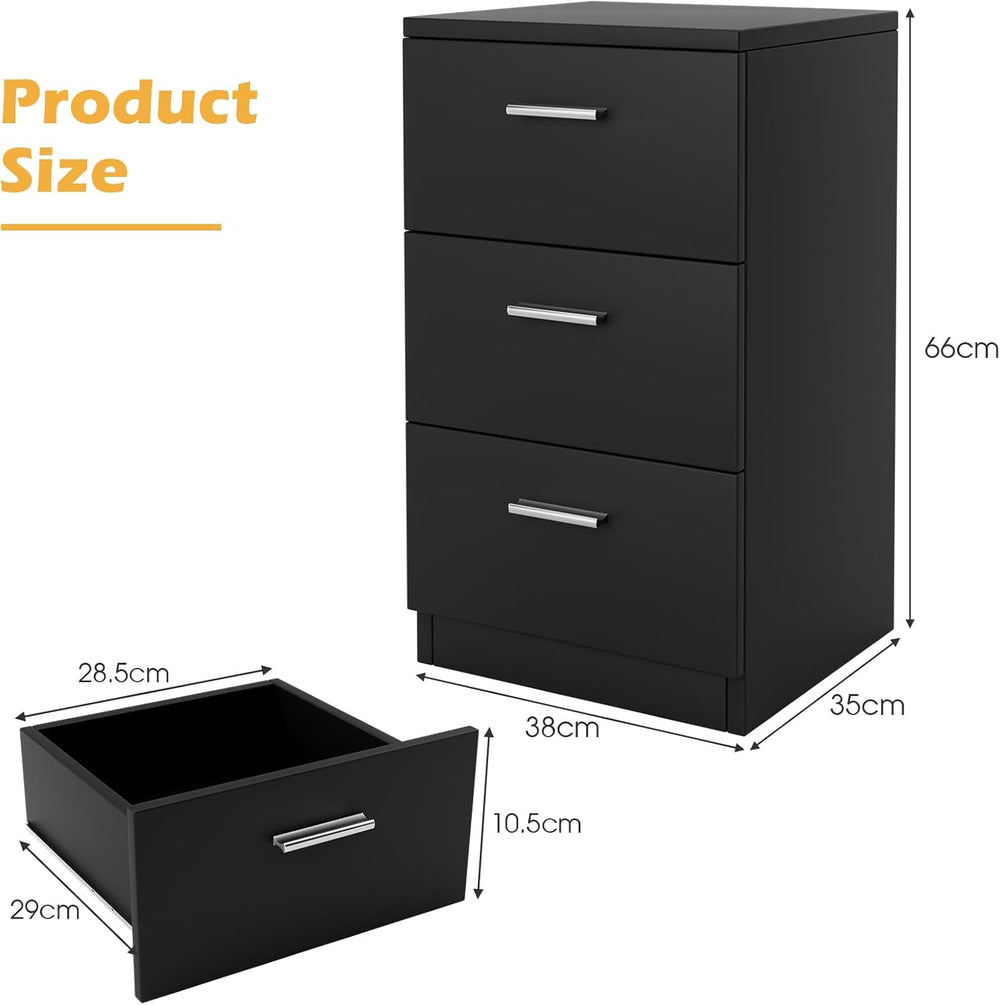 KOMFOTTEU Nachttisch Holz, Nachtschrank mit 3 Schubladen, Nachtkonsole 38 x 35 x 66 cm, Beistelltisc