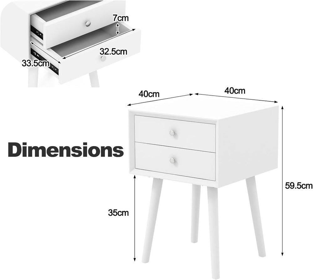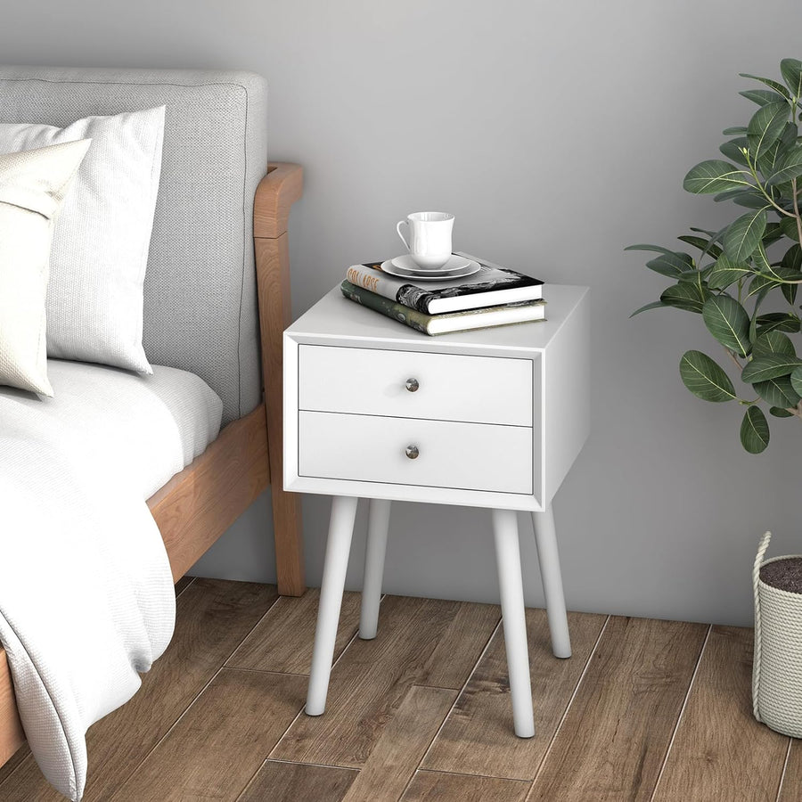 KOMFOTTEU Nachttisch mit Beinen aus Massivholz, Nachtschrank mit 2 Schubladen, skandinavisches Beist