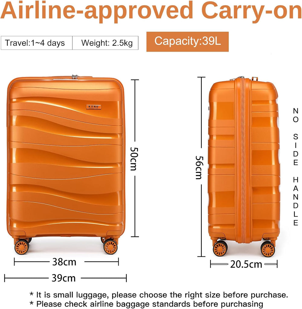 KONO Handgepäckkoffer 56cm Leicht Reisekoffer aus Polypropylen Hartschale Koffer mit 4 Rollen und TS