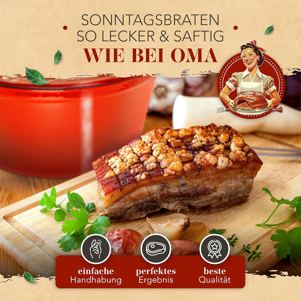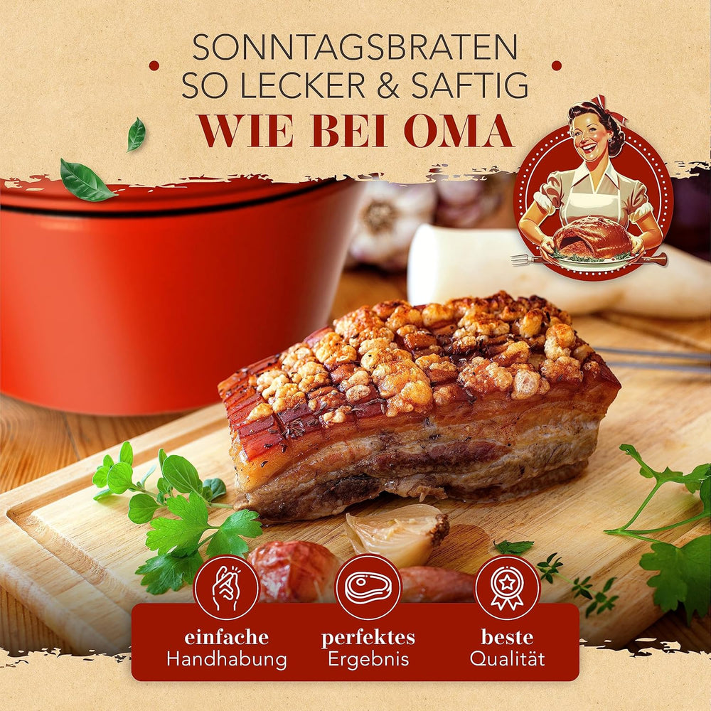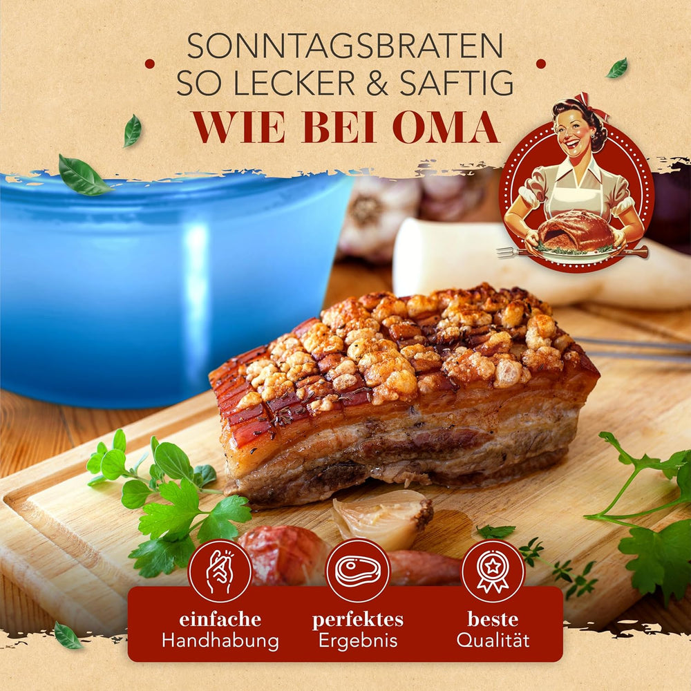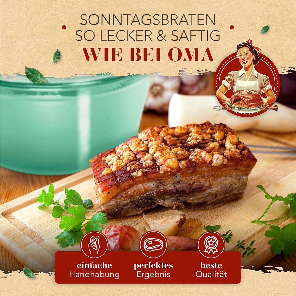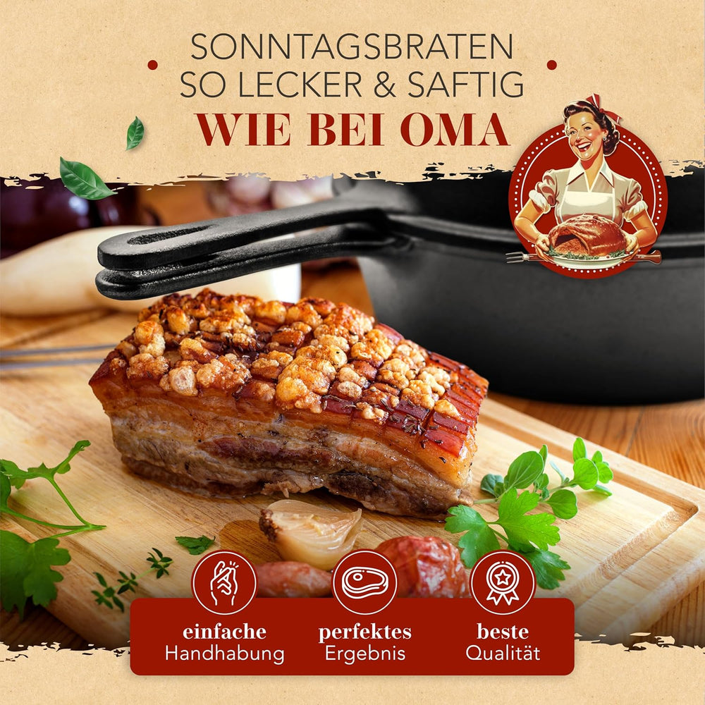 KRUSTENZAUBER Gusseisen Topf [inkl. Fleischgabel] - 26cm Schmortopf backofengeeignet - Idealer Bräte
