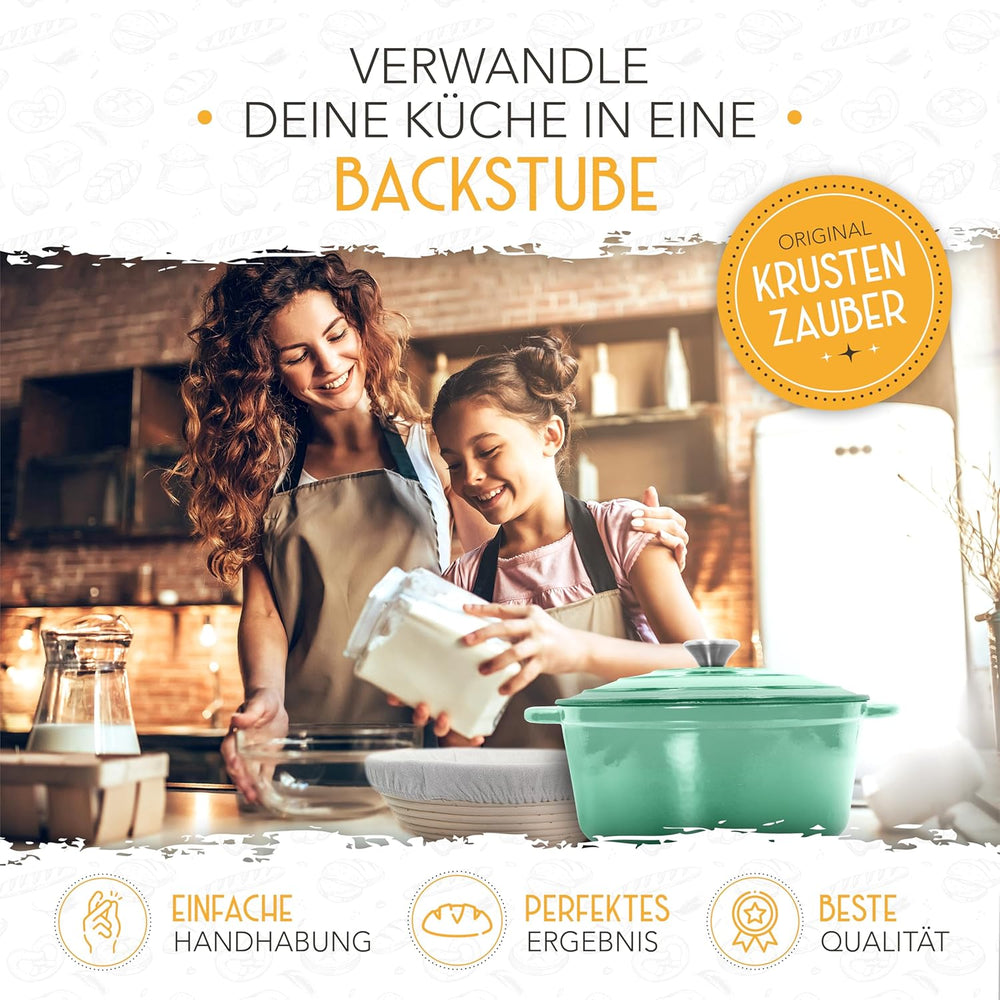 KRUSTENZAUBER Gusseisen Topf Brot Backen [inkl. Gärkorb] - Robuster 26cm gusseiserner Brottopf zum b