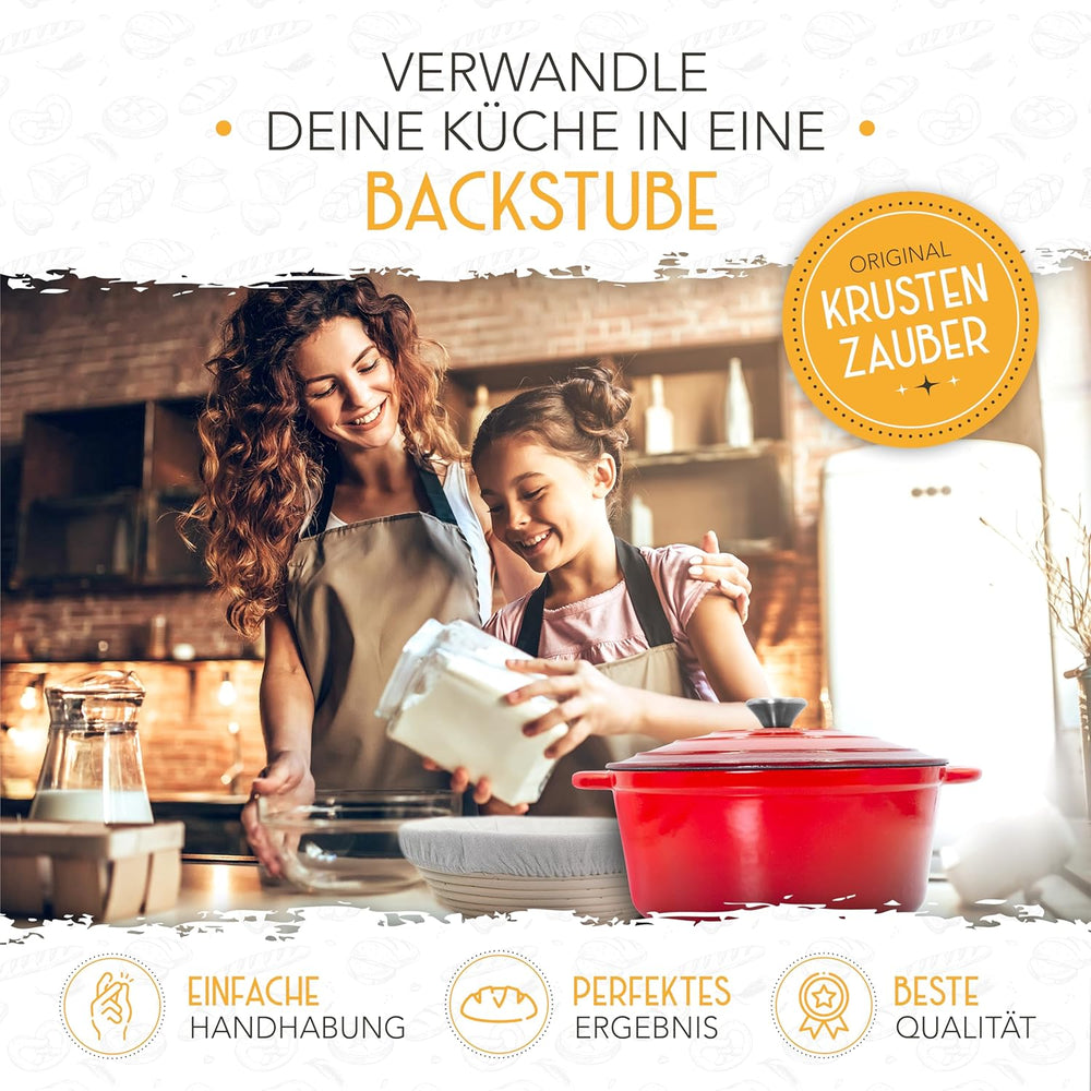 KRUSTENZAUBER Topf Brot Backen [inkl. Gärkorb] - Hochwertiger Emaille Topf 26cm - Idealer gusseisern