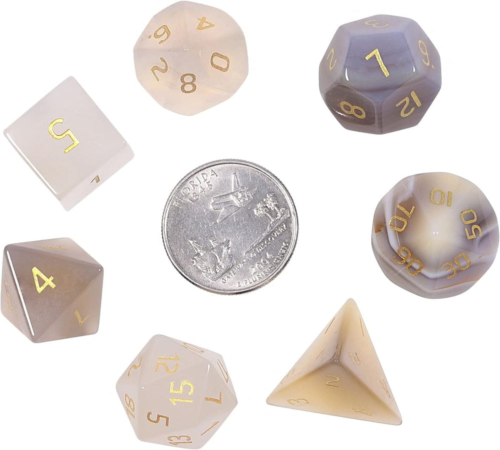 KYEYGWO Grauer Achat Kristall Polyedrische Würfel Set, 7pcs Reiki Heilung Stein Polyedrischer Spielw