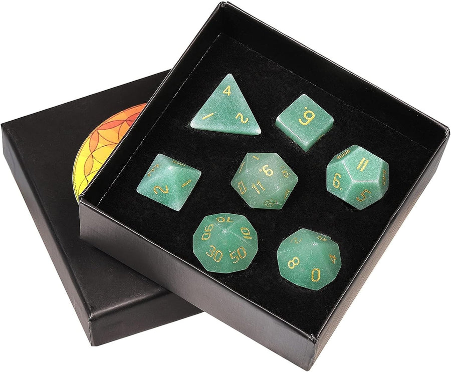 KYEYGWO Grüner Aventurin Kristall Polyedrische Würfel Set, 7pcs Reiki Heilung Stein Polyedrischer Sp