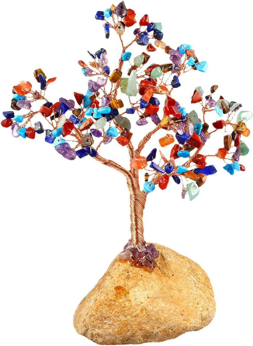 KYEYGWO Geld-Baum eingewickelt auf Steinbasis-Bonsaiskulptur-Figur für gutes Glück Bunter Kristall 1