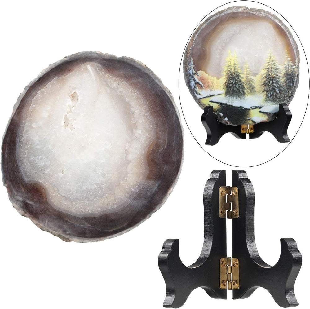 KYEYGWO Unregelmässige Achat Scheiben mit Holz Ständer, Achatscheiben Edelstein Feng Shui Desktop Or