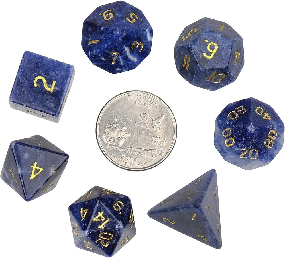 KYEYGWO Sodalith Kristall Polyedrische Würfel Set, 7pcs Reiki Heilung Stein Polyedrischer Spielwürfe