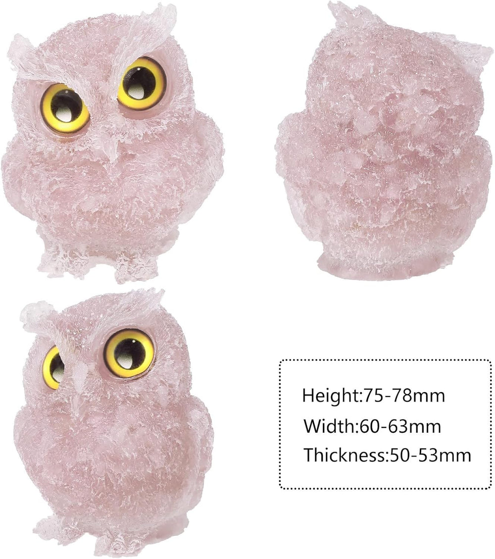KYEYGWO Rosenquarz Nette Kristall Eule Figur Ornamente, Mini Stein Käuzchen Statuen Harz Tier Skulpt