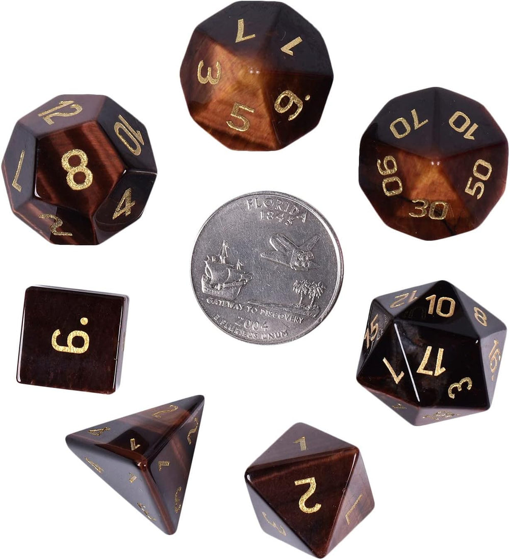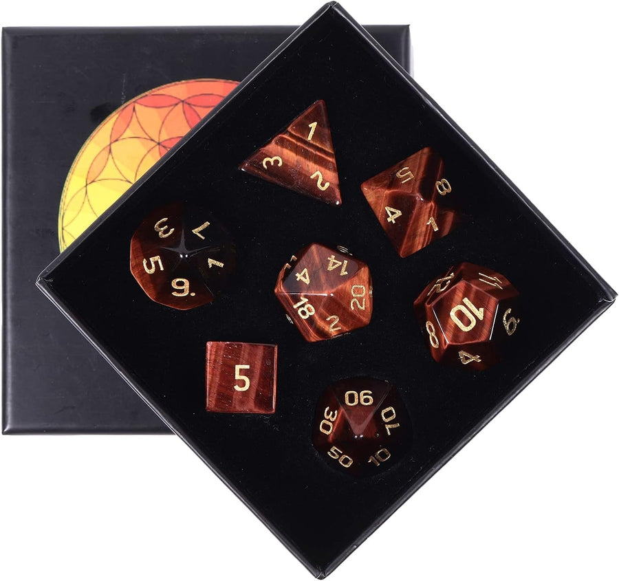 KYEYGWO Rotes Tigerauge Kristall Polyedrische Würfel Set, 7pcs Reiki Heilung Stein Polyedrischer Spi