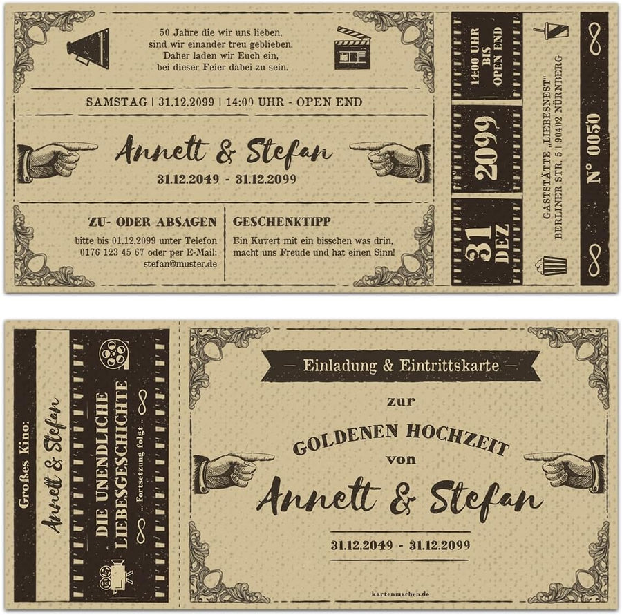 Kartenmachen.de 10 x Goldene Hochzeit Hochzeitseinladungen Goldhochzeit individuell Einladungskarten