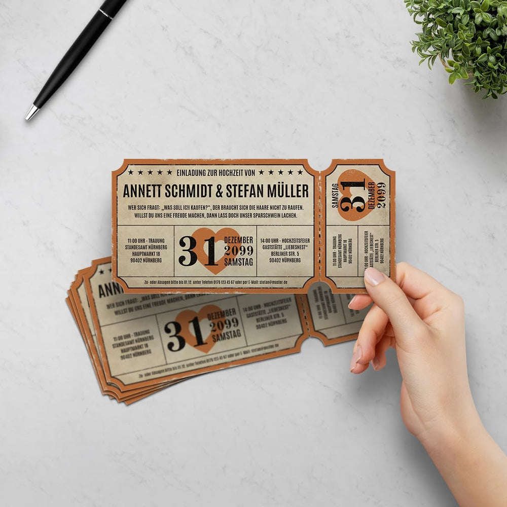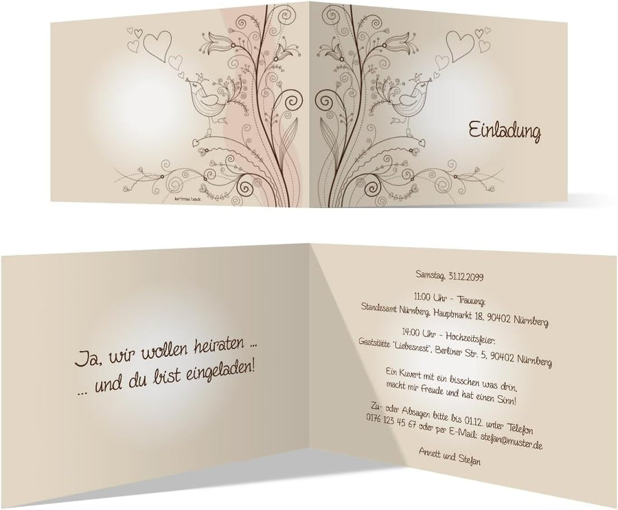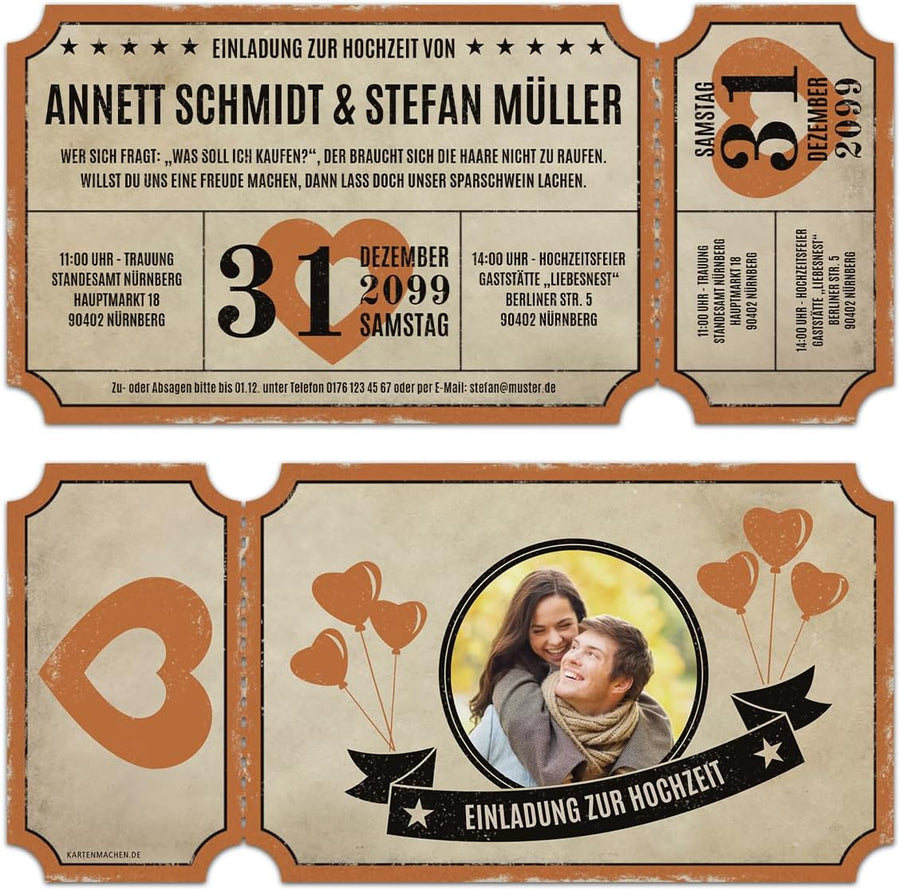 Kartenmachen.de 10 x Hochzeitseinladungen Einladungen zur Hochzeit individuell Text Gestaltung - Hol