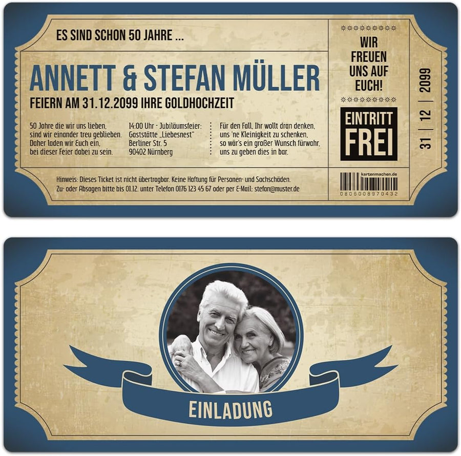 Kartenmachen.de Individuelle Foto Goldhochzeit Hochzeitseinladungen ab 10 bis 100 Stück selbst gesta