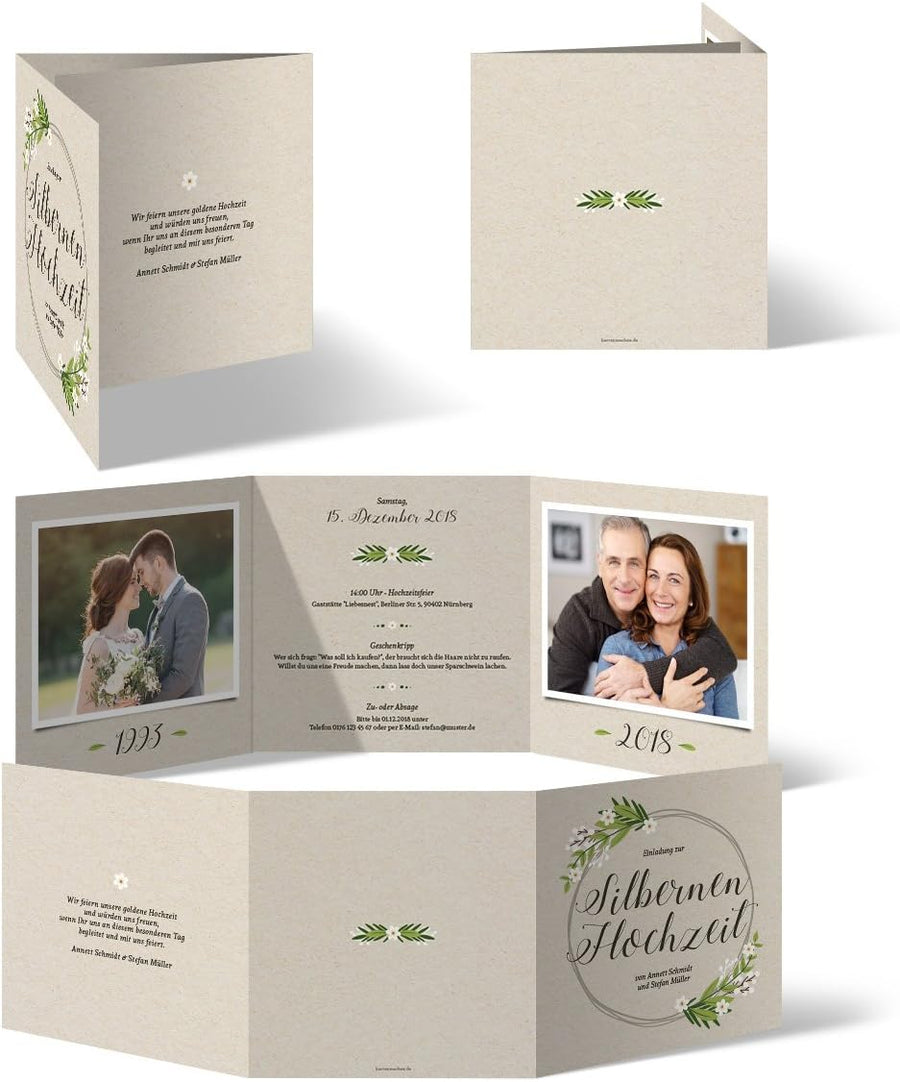 Kartenmachen.de 10 x Silberne Hochzeit Hochzeitseinladungen Silberhochzeit individuell Einladungskar