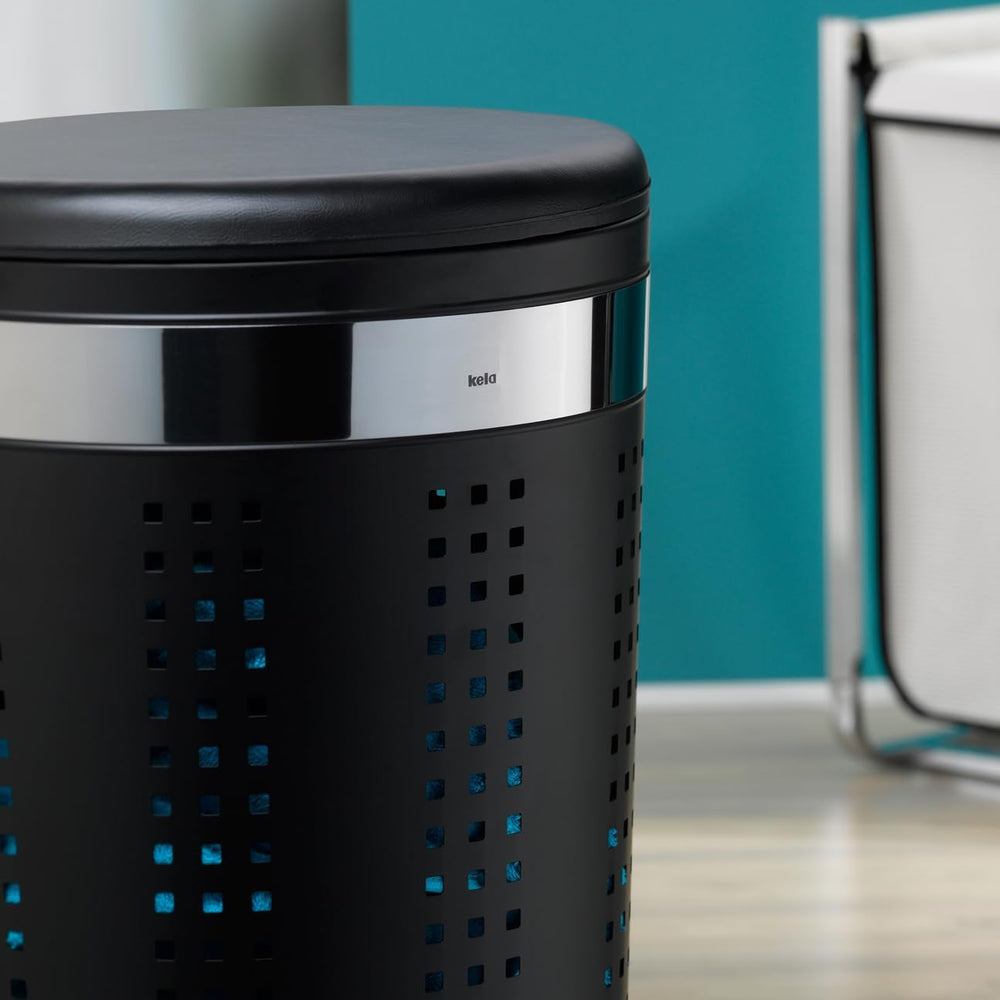 kela 21819 Wäschetruhe mit Sitzkissen, Rund, 60,5 cm Höhe, Metall, Sevilla, Hellgrau Hellgrau Metall