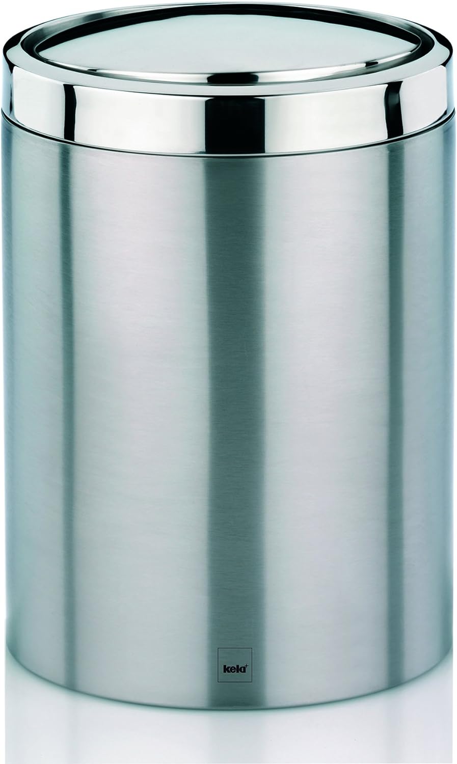 KELA 21382, Schwingdeckeleimer 7,0 l, Edelstahl, Ari, Silber Matt, 19.5 x 19.5 x 27.5 cm Silber Matt